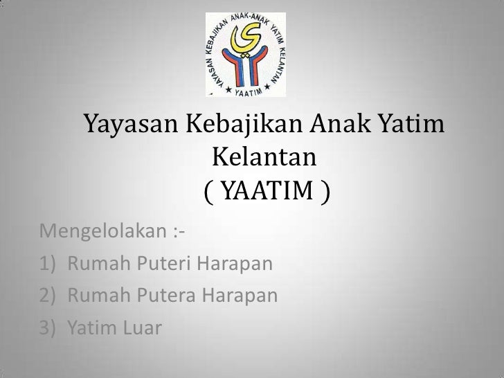 5219 likes 17 talking about this 72 were here. Yayasan Kebajikan Anak-Anak Yatim YAATIM Kelantan Rumah Puteri Harapan No. Established since 1993 Year of Establishment.